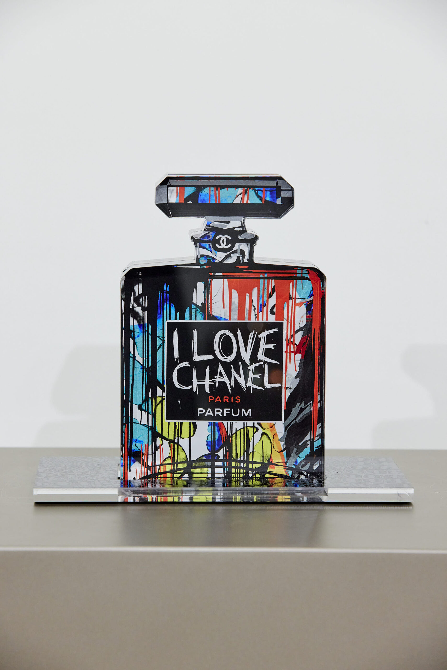 “Behold the ethereal masterpiece,”Cindy Bottle”, a captivating fusion of artistry and allure. Crafted from sleek plexiglass, this exquisite objet d’art assumes the iconic form of a perfume flacon, reminiscent of the revered Parfum No. 5.