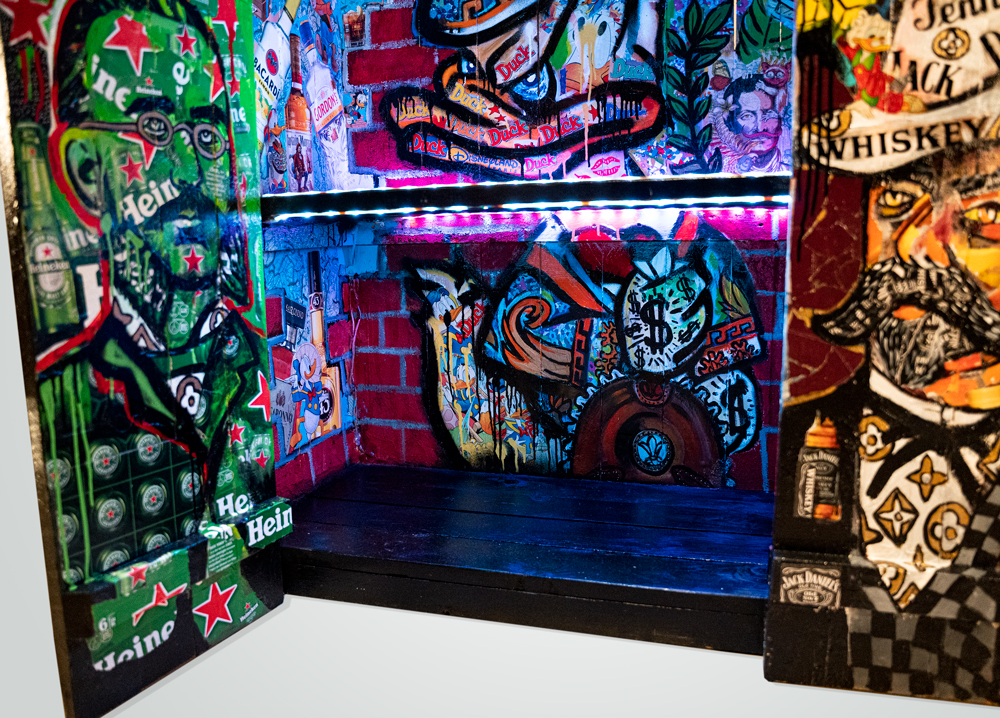 Every inch of the cabinet is a canvas for Art by Son’s artistic prowess. Scenes of merrymaking, lively gatherings, and fantastical characters adorn the cabinet’s doors and shelves, creating a vibrant tapestry of storytelling. The use of vivid colors and meticulous brushstrokes brings these scenes to life, inviting viewers to step into this world of revelry.