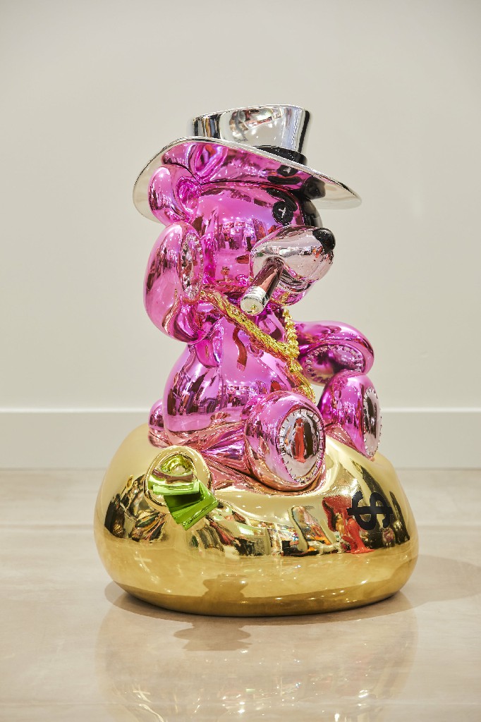 This incredible sculpture by the renowned artist Diederik van Apple is a must-have item for any collector who appreciates exclusive and high-quality art. With its unique Resin chrome acrylic technique, the “Mr. Cohiba blue” piece features a pink bear with silver details, sporting a hat with a gold chain with the dollar sign, and stylishly smoking a cigar. The majestic figure is sitting on top of a money bag, adding a fun and irreverent touch to the piece. This limited edition is a unique opportunity to acquire a unique and impressive work of art. Don’t miss the chance to have this masterpiece in your collection.